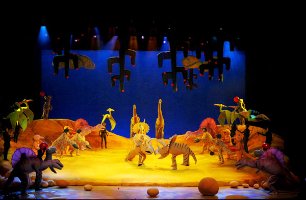 这时,吉泰龙率领着更多的食肉恐龙朝他们围攻上来。于是,霸王龙提议和很好吃比赛,看谁先跑上山顶。