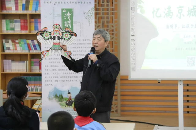 “不得高飞便,回头望纸鸢”。说起传统文化,放风筝自古便是清明节的一大节日习俗。今天,我们还邀请到民间艺术家协会副主席赵铁民老师,手把手为孩子们教学老北京风筝的制作。