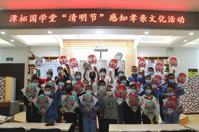 孩子们亲手彩绘脸谱风筝,感受非遗传统,在清明来临之际放飞一段深深地思念。