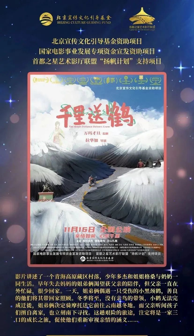 影片将于明天正式上映。愿更多的观众能走进影院,感受一场温润心灵的成长之旅,体悟亲情如翼,心系千里,11月16日一同送鹤归家。