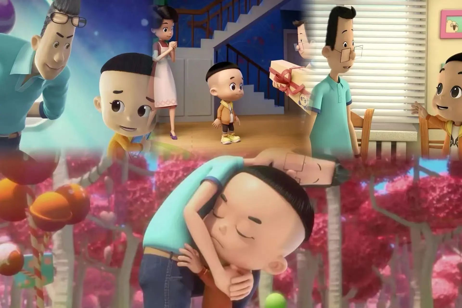 幼儿园的家长开放日,小朋友们的爸爸依次登台,展示各自专业技能。大头儿子和围裙妈妈也在期待着小头爸爸的精彩表现。而小头爸爸因彻夜编程,不光在最后一刻匆忙赶来,他关于AI系统的高深演示也让听众昏昏欲睡。今天本是大头儿子的生日,爸爸的“失误”,让自己十分沮丧。大头儿子无意间触发了爸爸正在编写的程序,意外地被带入了一个神秘世界,那里住着一个毫无缺点的“完美爸爸”,俩人一起穿越云朵、创建城市、进入太空舱、畅游糖果海……所有心愿都被“完美爸爸”一一满足。然而,大头儿子不知道的是在“完美”的背后却暗藏危机……