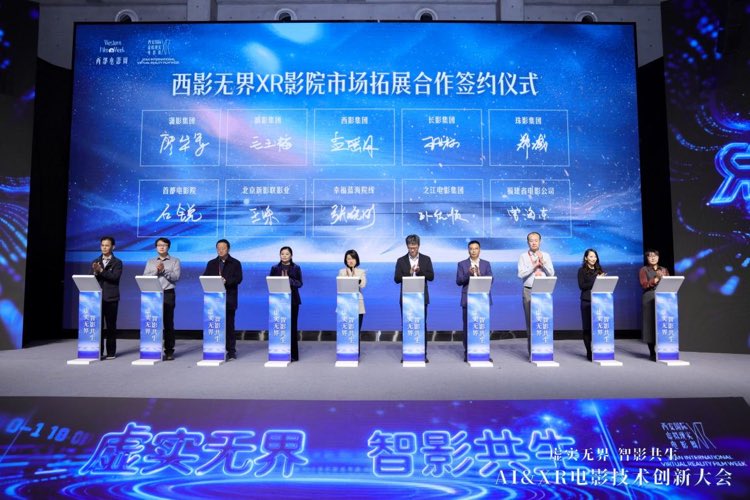 其中,西影集团携手北京新影联影业(院线)与长影集团、峨影集团、珠影集团、潇影集团、福建省电影公司、幸福蓝海院线、之江时代院线、北京天桥盛世投资集团、首都电影院等涵盖电影制、发、放等核心链条的企业达成合作,共同推进“无界XR影院”项目的市场落地与推广。该项目整合各方资源,通过输出内容、输出平台、输出方式的打通,完成影院、商业综合体、文旅设施与家庭娱乐设备等平台的衔接,实现多元化视听内容的打造、供给,形成市场化、商业化运营。