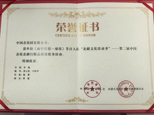 更令人振奋的是,该节目凭借其卓越的艺术表现力与创新性,荣获中国杂技家协会颁发的荣誉证书!这份沉甸甸的认可,属于台前幕后每一位倾情付出的中杂人,是我们在传承与创新道路上不懈追求的有力证明!