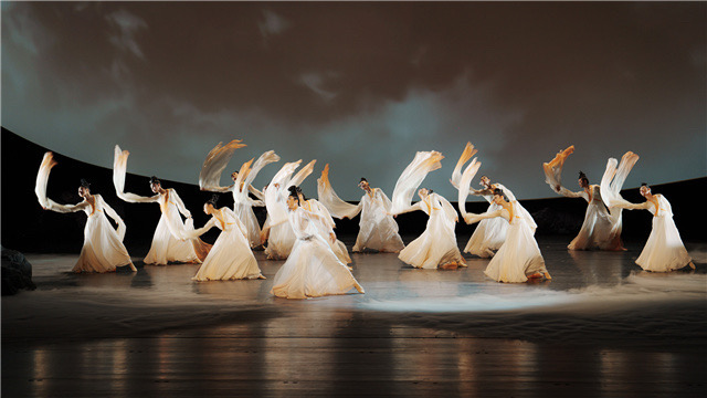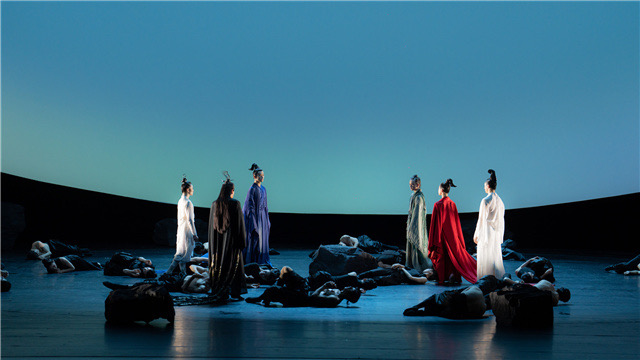 舞蹈诗剧《九歌》是由北京天桥艺术中心出品,北京歌剧舞剧院、中演院线、北京云上天幕文化联合出品的原创舞作,作品取材于《楚辞》诗篇,以舞塑神、以神喻人。