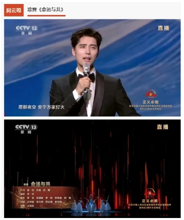 北京歌剧舞剧院音乐剧团团长、演员阿云嘎担任晚会尾声中歌舞《命运与共》领唱,深情演唱“信那未来是一首共同唱响的歌,唱来路风起云涌,致远方海阔天空”人类命运共同体的和合乐章。